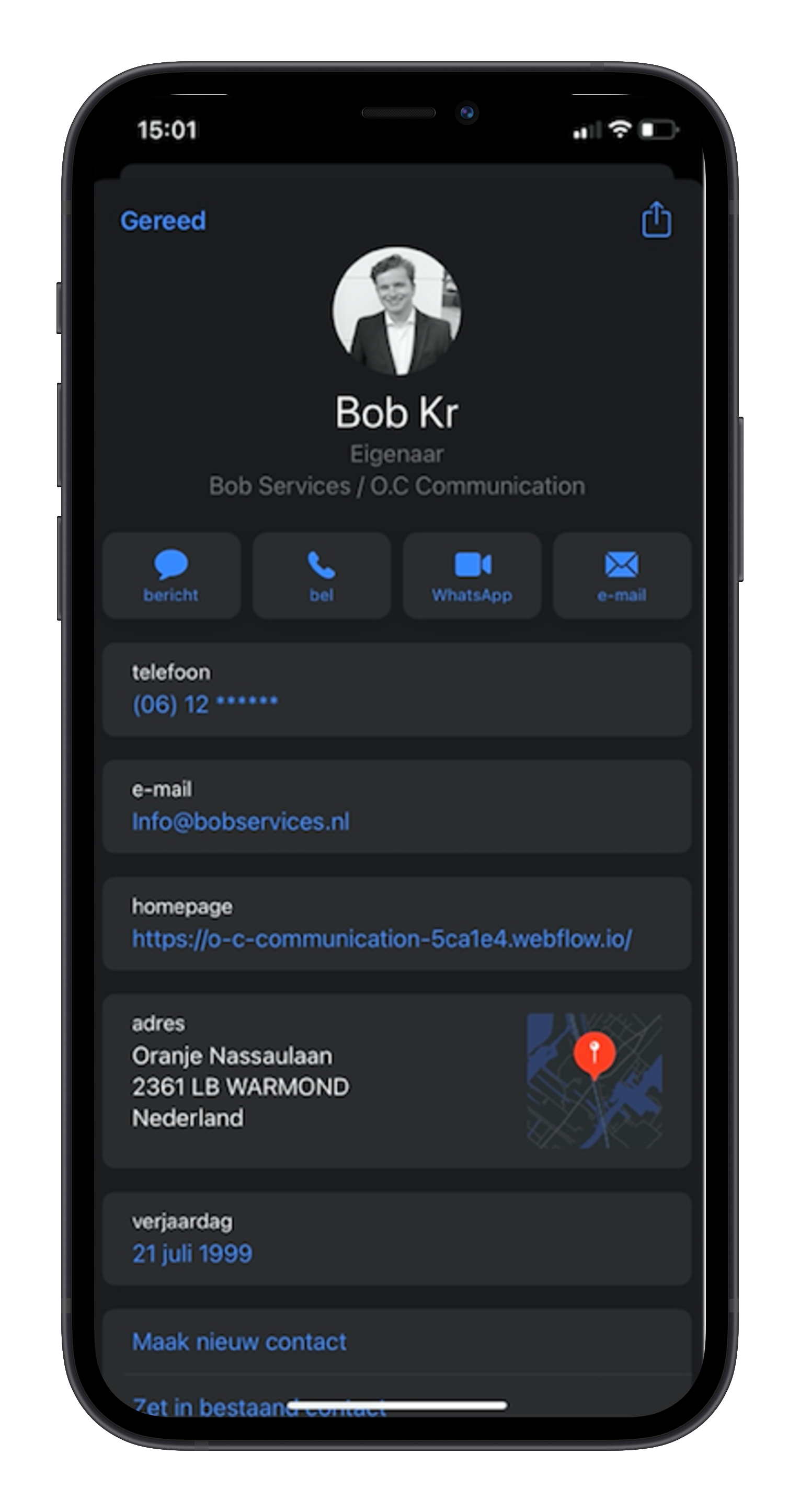 O.C maakt gebruik van speciale NFC-technologie om uw contactgegevens naadloos te delen met anderen. Hij kan worden bevestigd aan uw smartphone, Portemonnee of waar u maar wilt. Als u erop met een telefoon op tapt, deelt hij veilig uw contactgegevens, zonder dat u een app hoeft te downloaden. Het is als een digitaal visitekaartje dat u de kosten van echte visitekaartjes bespaart. Meer weten? Laat uw gegevens dan hieronder achter.